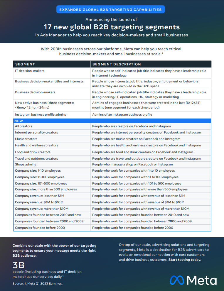 Quels sont les nouveaux segments d’audience Facebook B2B proposés par la plateforme ?